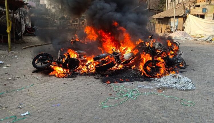 ভাঙড়, ১৪ এপ্রিল: প্রথমে ইট দিয়ে ভাঙচুর করা হয়, তারপর আগুন লাগিয়ে দেওয়া হয় বাইকগুলিতে। কলকাতা পুলিশের গাড়ি ভাঙচুর করা হয়। লাঠিচার্জ করে পুলিশ পরিস্থিতি নিয়ন্ত্রনে আনলেও এবার উত্তপ্ত হয়ে উঠল শোনপুর এলাকা। জানা গিয়েছে, বিক্ষুব্ধরা পাঁচটি পুলিশের বাইক আগুন দিয়ে জ্বালিয়ে দিয়েছে। ভেঙে ফেলা হয় একের পর এক গাড়ির কাচ।