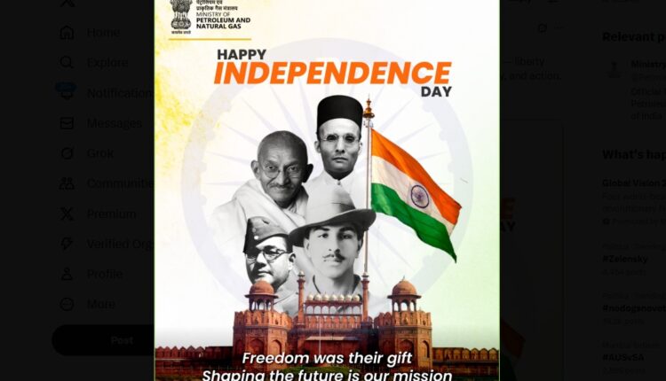ডিজিটাল ডেস্ক, ১৬ অগাস্ট : স্বাধীনতা দিবসে পেট্রোলিয়াম ও প্রাকৃতিক গ্যাস মন্ত্রকের একটি পোস্টার ঘিরে শুরু হয়েছে তীব্র বিতর্ক (Controversy On Independence Day Poster)। পোস্টারে মহাত্মা গান্ধী, নেতাজি সুভাষচন্দ্র বসু এবং ভগৎ সিংয়ের সঙ্গে বিনায়ক দামোদর সাভারকরের ছবি একসঙ্গে দেখানো হয়েছে—যা নিয়ে বিরোধীরা সরব হয়েছেন।