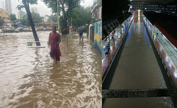 নিচু এলাকাগুলিতে সড়কপথে হাঁটুর উপরে উঠেছে জমা জল। আন্ধেরি, কুর্ল, বান্দুপ, কিং’স সার্কেল, ভিলে পার্লে এবং দাদর সহ এলাকায় ব্যাপক জল জমেছে। বেশ কিছু জায়গায় জলের তোড়ে গাড়ি ভেসে যেতে দেখা গিয়েছে। বাতিল হয়েছে বহু ট্রেন এবং বাস পরিষেবা। বাতিল ৫১ বিমান। সব মিলিয়ে কয়েক ঘণ্টার বৃষ্টিতে জেরবার মুম্বাই। তবে দূরপাল্লার ট্রেন বাতিল হওয়ার খবর দুপুর পর্যন্ত মেলেনি। বাতিল হয়েছে পুণে থেকে মুম্বইগামী কিছু প্যাসেঞ্জার ট্রেন এবং লোকাল ট্রেন।