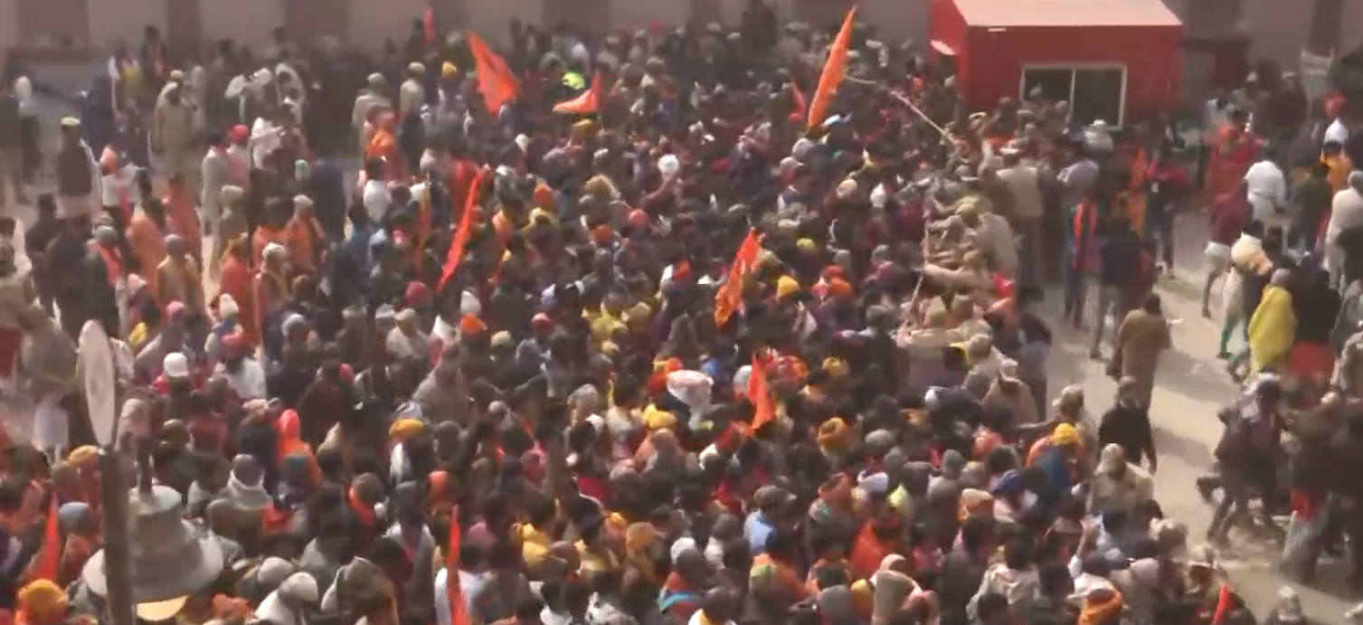 রাম মন্দিরের সামনে নিরাপত্তা বলয় ভেঙে রামলালা দর্শনের জন্য সমাগম হয় শয়ে শয়ে মানুষ। পুলিশের নিরাপত্তা বেষ্ঠনী ভেঙে চুরমার করে মন্দিরের ভিতরে প্রবেশের চেষ্টা করেন কয়েকশ মানুষ। রামলালা দর্শনের জন্য সাধারণ মানুষকে যে কোনওভাবে আটকাতে পারছেন না নিরাপত্তা রক্ষীরা। ভিড়ের চাপে বেশ কয়েক জন অসুস্থ হয়ে পড়েছেন বলেও জানা গিয়েছে।
