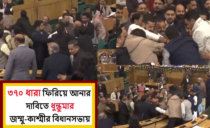 জম্মু ও কাশ্মীরে ফের ৩৭০ ধারা ফেরাতে চেয়ে বুধবার প্রস্তাব পাশ হয় কাশ্মীর বিধানসভায়। বৃহস্পতিবার বিধানসভার অধিবেশনে আওয়ামি ইত্তেহাদ পার্টির বিধায়ক খুরশিদ আহমেদ শেখ ৩৭০ ধারার সমর্থনে একটি পোস্টার তুলে ধরেন। সেই পোস্টারে আপত্তি জানান বিধানসভার বিরোধী দলনেতা তথা বিজেপি বিধায়ক সুনীল শর্মা। ওই পোস্টারের বিরুদ্ধে স্লোগান দিতে থাকেন বিজেপি বিধায়করা। বিষয়টিকে কেন্দ্র করে শাসক এবং বিরোধী দলের বিধায়কদের মধ্যে হাতাহাতি শুরু হয়।