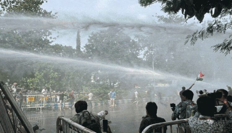 পুলিশ-বিক্ষোভকারীদের খণ্ডযুদ্ধ। হাওড়া ব্রিজে চলল জলকামান। ফাটল টিয়ার গ্যাসের শেল। ব্যারিকেডের মাথায় উঠে জাতীয় পতাকা নিয়ে প্রতিবাদ। পুলিশকে লক্ষ করে ইট। হাওড়া সেতুতেও পুলিশের ব্যারিকেড ভাঙার চেষ্টা বিক্ষোভকারীদের। ব্যারিকেডের একাংশ ভাঙতেই জলকামান চালানো শুরু করল পুলিশ। ব্যবহার করা হচ্ছে কাঁদানে গ্যাসও। চলছে লাঠিচার্জ। পুলিশের ত্রিমুখী আক্রমণে ছত্রভঙ্গ বিক্ষোভকারীরা।
