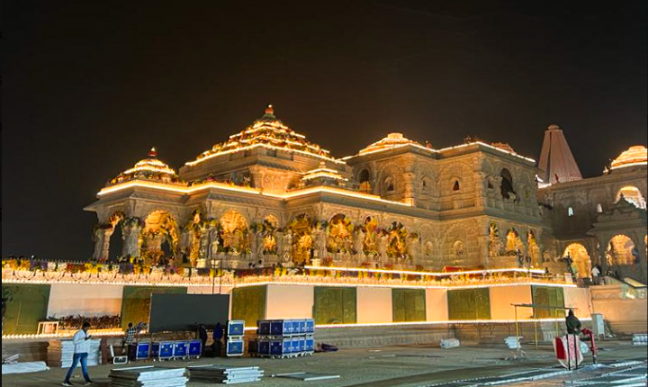 কাউন্টডাউন শুরু। অপেক্ষা আর মাত্র কয়েকটা ঘণ্টার। তারপরই অযোধ্যায় প্রাণপ্রতিষ্ঠা হতে চলেছে রামলালার। ইতিমধ্যেই গোটা দেশ তথা অযোধ্যার সঙ্গে সেজে উঠেছে মন্দির। ফুলে ফুলে ঢেকে গেছে মন্দিরের বাইরের গেট থেকে লতা মঙ্গেশকর চক, অযোধ্যার সমস্ত রাস্তা। মন্দিরের গেট শিশু রামের বিভিন্ন কাটআউট আর ফুল দিয়ে সাজানো হয়েছে। সর্বত্রই শুধু গোলাপ, গাঁদা, রজনীগন্ধার সারি। মন্দিরের চূরা সাজানো হচ্ছে ফুল দিয়ে। মূল মন্দিরের পাশাপাশি অন্য মন্দিরগুলিকেও ঢেকে ফেলা হয়েছে ফুলে। অযোধ্যার রাস্তা থেকে সমস্ত দোকান, বাড়ির দেওয়ালে লেখা জয় শ্রীরাম। রাস্তার মাঝখানের বাতিগুলিতেও লাগানো হয়েছে রামের কাটআউট।
