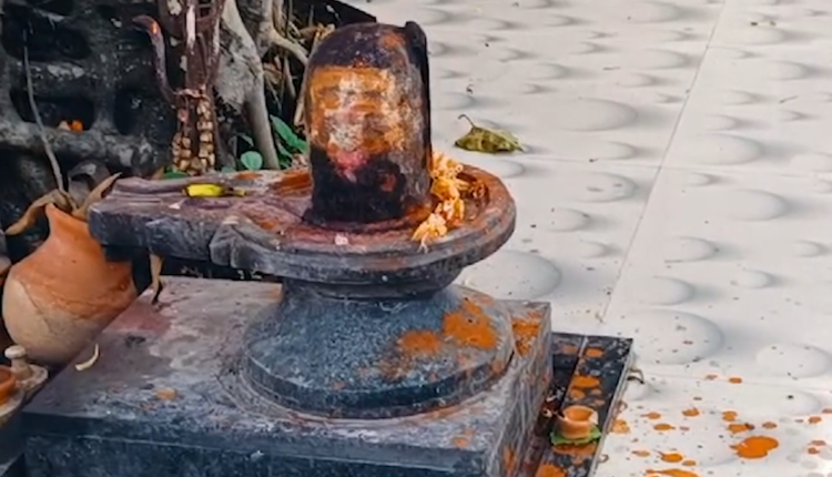 শিবলিঙ্গের উপরে পানের পিক অজ্ঞাতপরিচয় দুষ্কৃতীর