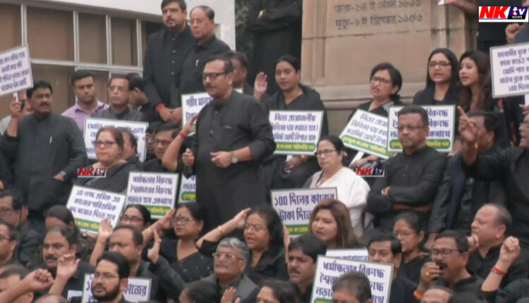 কেন্দ্রীয় বঞ্চনার অভিযোগ এবং ১০০ দিনের প্রকল্পে বকেয়া টাকা আদায়ে চাপ বাড়ানোর কৌশল নিয়েছে তৃণমূল। কালো পোশাক পরে বিধানসভার বাইরে বিক্ষোভে সামিল হলেন তৃণমূলের বিধায়করা। বিক্ষোভ সমাবেশে যোগ দিলেন মুখ্যমন্ত্রী মমতা বন্দ্যোপাধ্যায়।